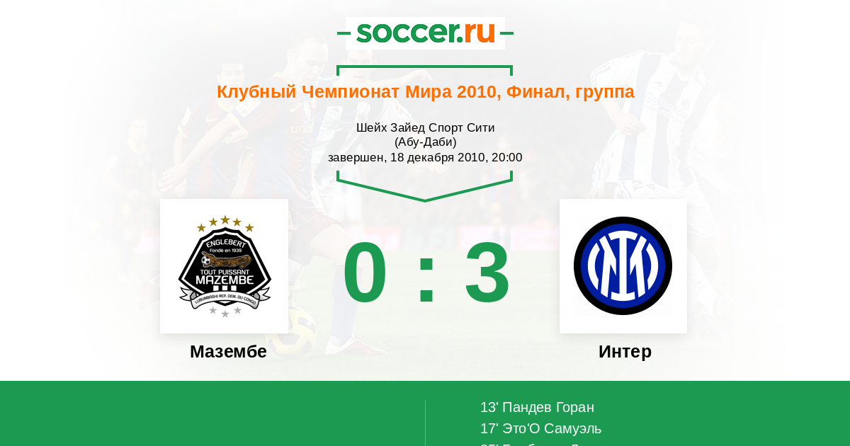 13' (0:1) Пандев Горан (27) (Это'О Самуэль (9))