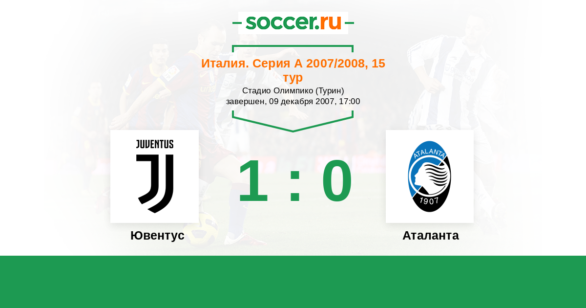 Италия. Серия А 16.12.2012 Ювентус Логотип футбольный клуб Ювентус (Турин) 3:0 Логотип футбольный клуб Аталанта (Бергамо) Аталанта