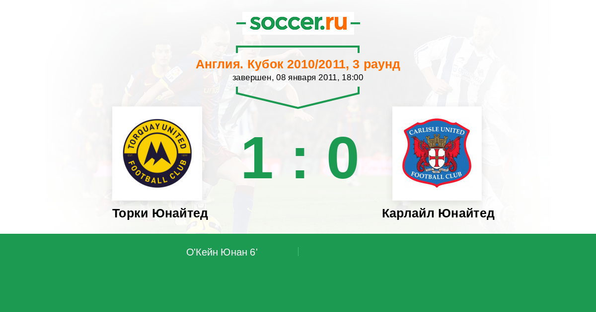 Протокол матча Торки Юнайтед против Карлайл Юнайтед