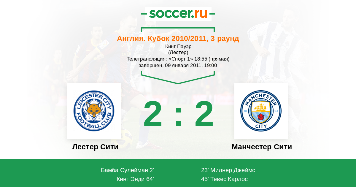 Протокол матча Лестер Сити против Манчестер Сити