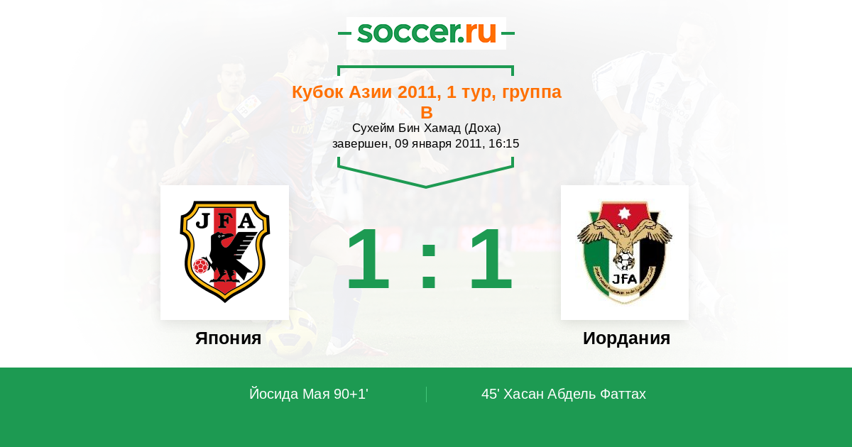 Протокол матча Япония против Иордания