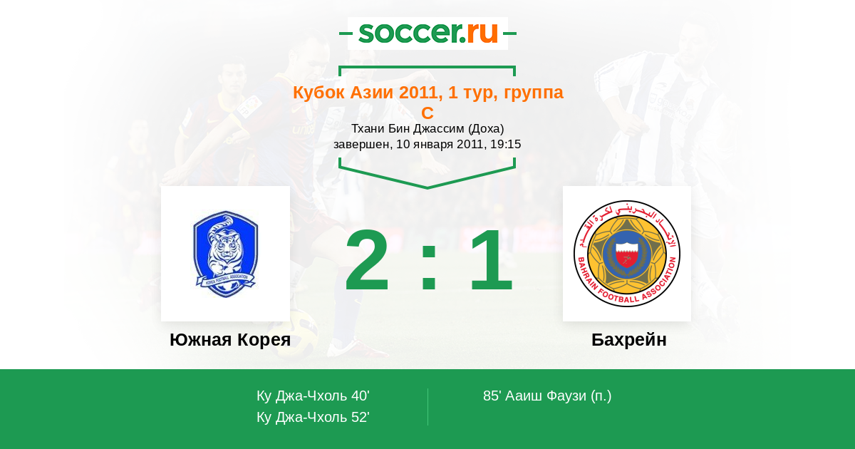 52' (2:0) Ку Джа-Чхоль (13) (Ча Ду Ри (22))