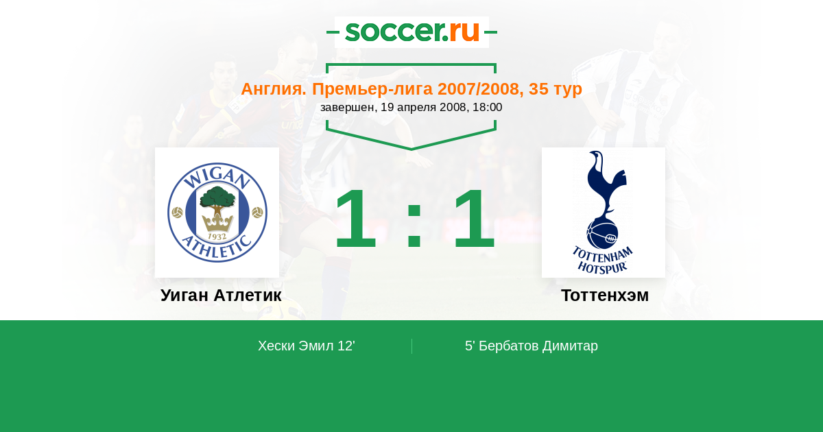 Протокол матча Уиган Атлетик против Тоттенхэм