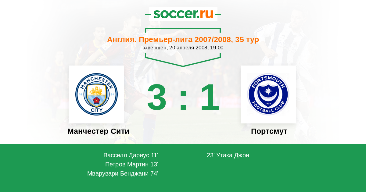 Протокол матча Манчестер Сити против Портсмут