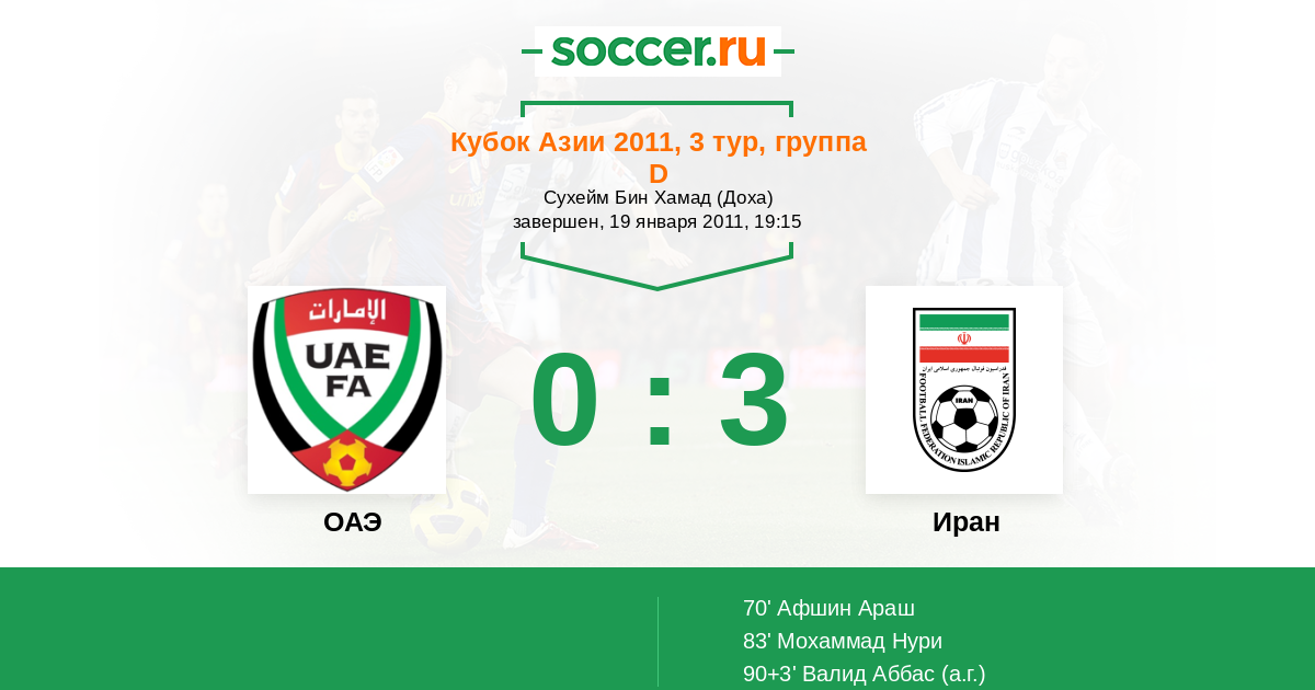 Протокол матча ОАЭ против Иран