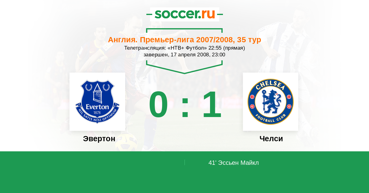 Протокол матча Эвертон против Челси