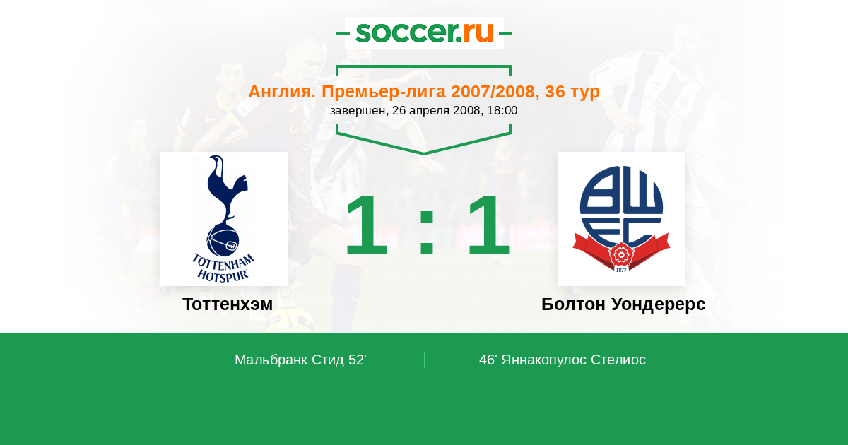 Протокол матча Тоттенхэм против Болтон Уондерерс