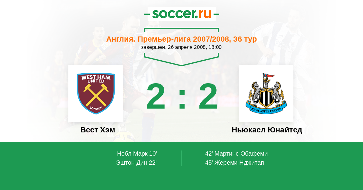 Протокол матча Вест Хэм против Ньюкасл Юнайтед