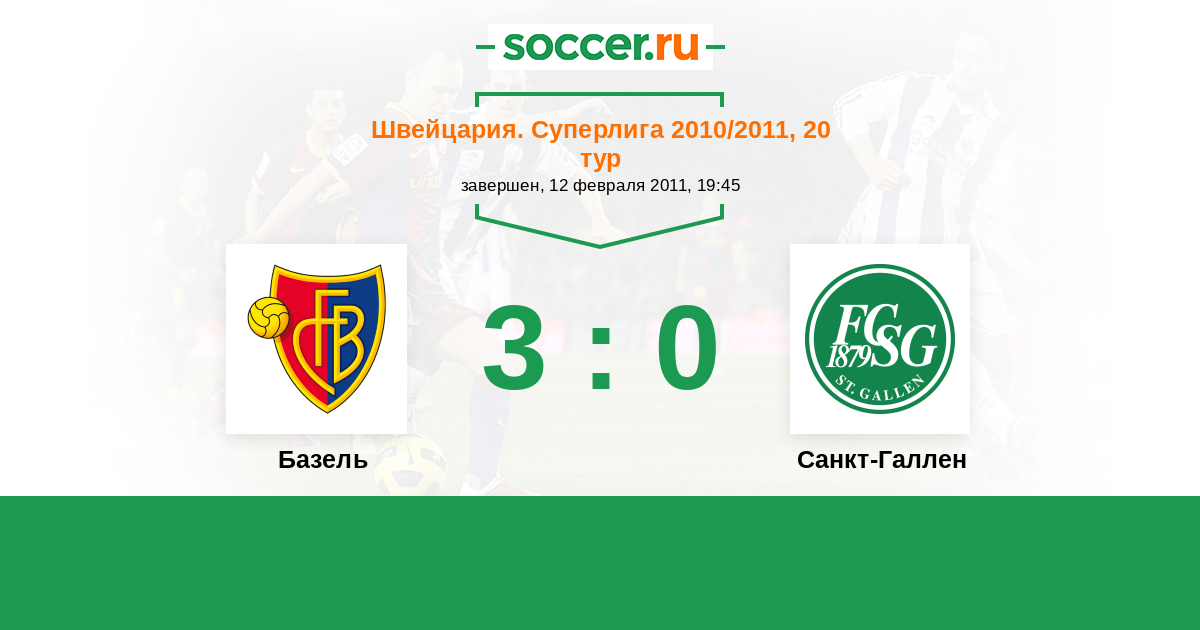 Швейцария. Суперлига 24.10.2010 Санкт-Галлен Логотип футбольный клуб Санкт-Галлен 1:3 Логотип футбольный клуб Базель Базель