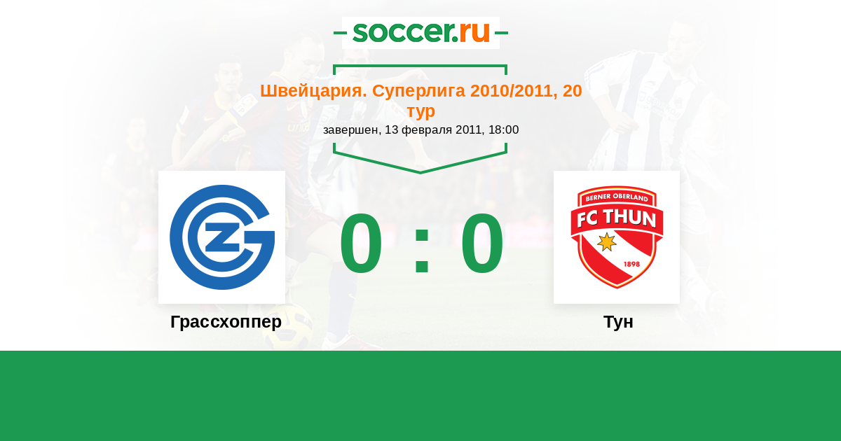 Швейцария. Суперлига 24.10.2010 Грассхоппер Логотип футбольный клуб Грассхоппер (Цюрих) 0:0 Логотип футбольный клуб Тун Тун