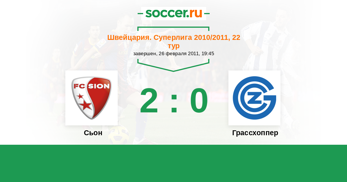 Швейцария. Кубок 02.03.2011 Грассхоппер Логотип футбольный клуб Грассхоппер (Цюрих) 1:2 Логотип футбольный клуб Сьон Сьон