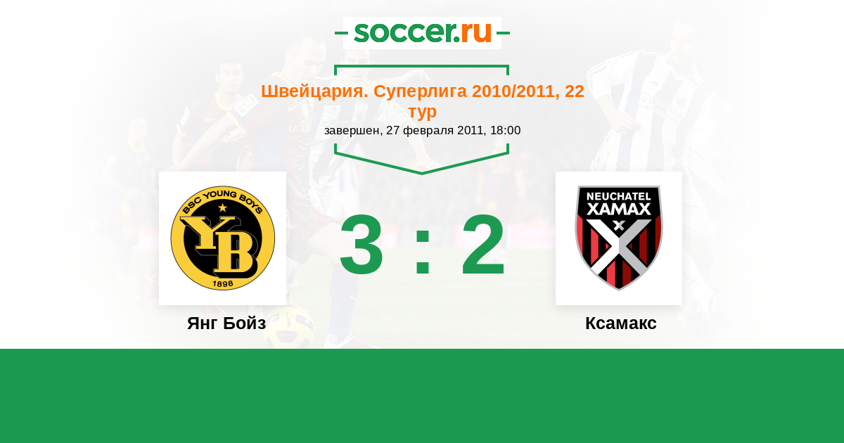 Швейцария. Суперлига 07.03.2010 Ксамакс Логотип футбольный клуб Ксамакс (Невшатель) 1:0 Логотип футбольный клуб Янг Бойз (Берн) Янг Бойз