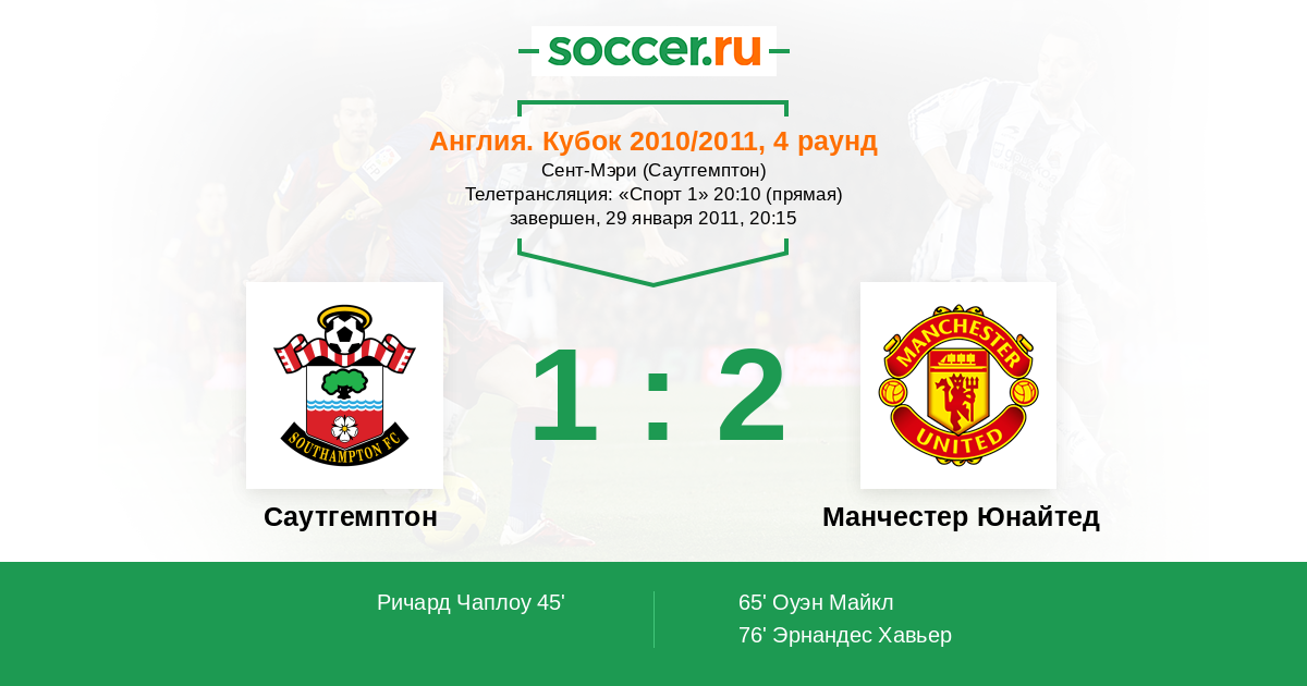 Протокол матча Саутгемптон против Манчестер Юнайтед