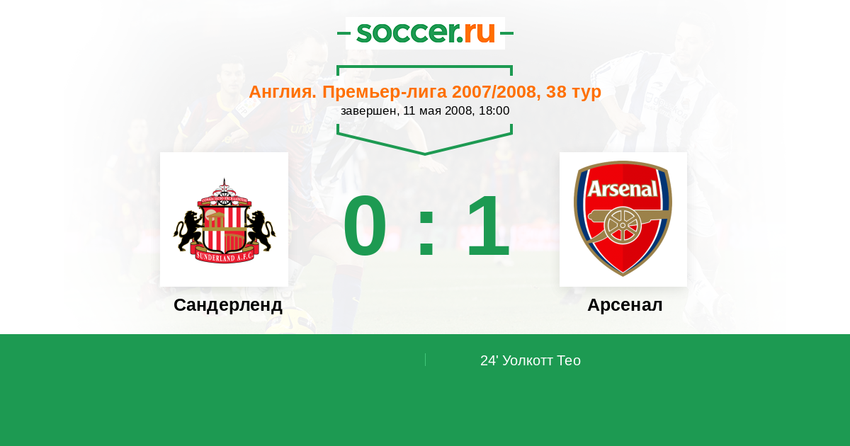 Протокол матча Сандерленд против Арсенал