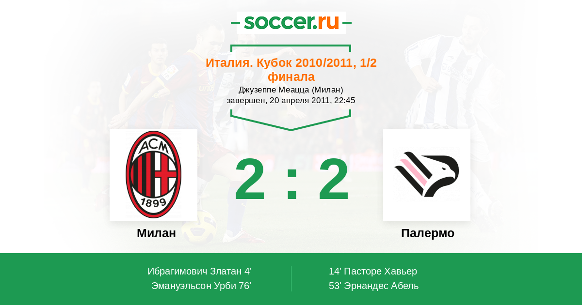 Протокол матча Милан против Палермо
