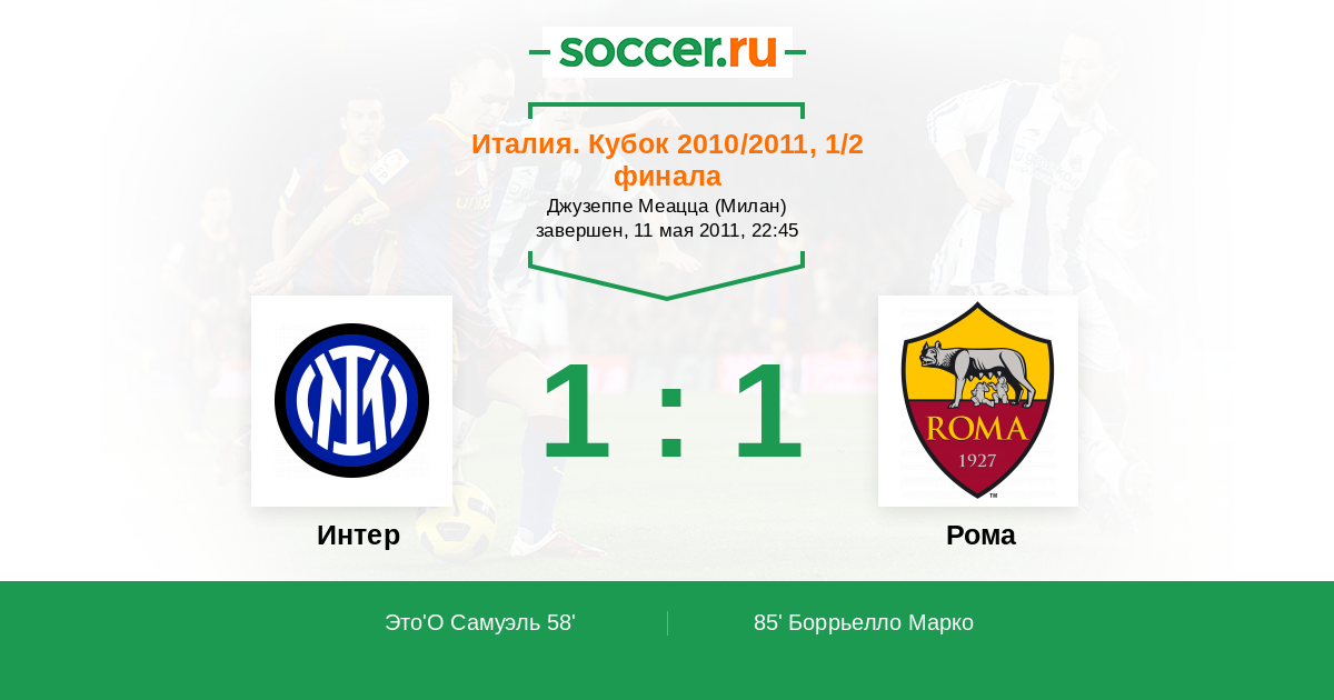 Протокол матча Интер против Рома