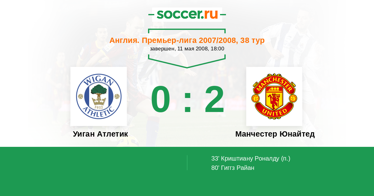 Протокол матча Уиган Атлетик против Манчестер Юнайтед