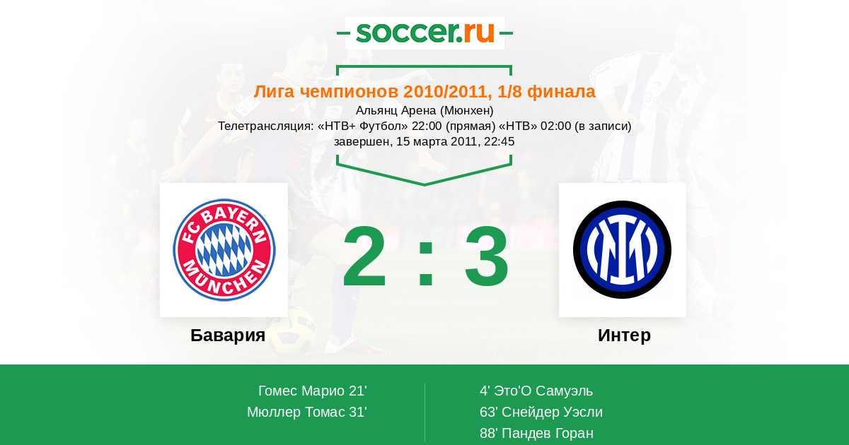 Протокол матча Бавария против Интер