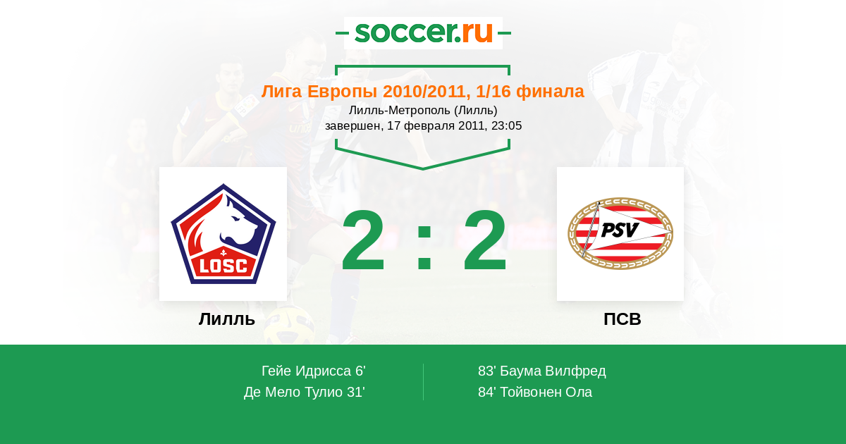 Протокол матча Лилль против ПСВ