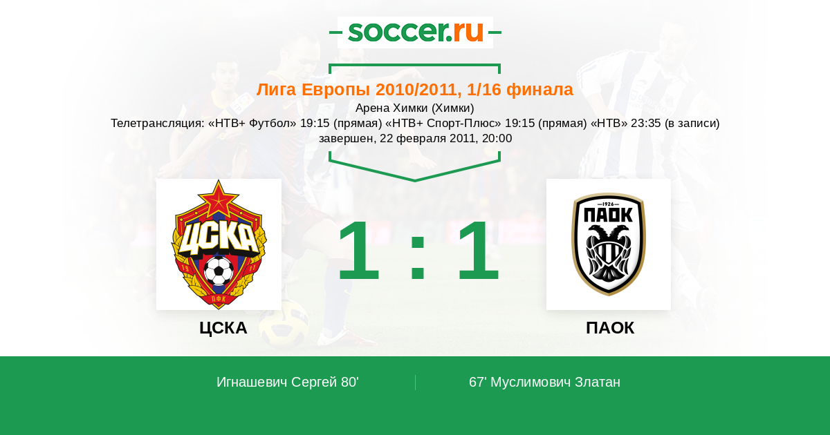 Протокол матча ЦСКА против ПАОК