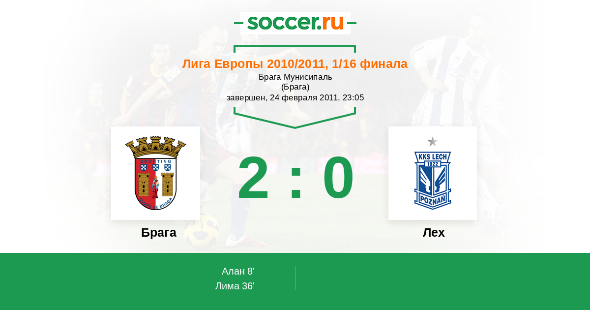 Протокол матча Брага против Лех