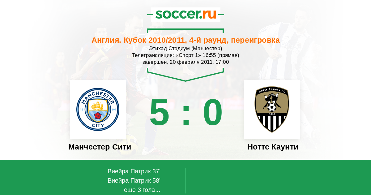 Протокол матча Манчестер Сити против Ноттс Каунти