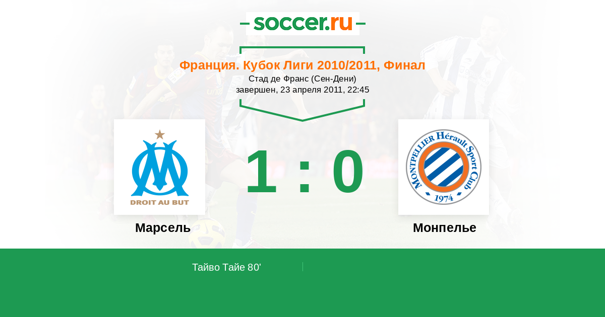 Протокол матча Марсель против Монпелье
