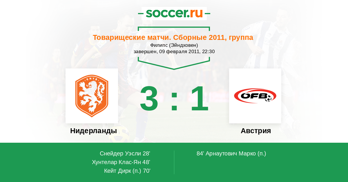 Протокол матча Нидерланды против Австрия