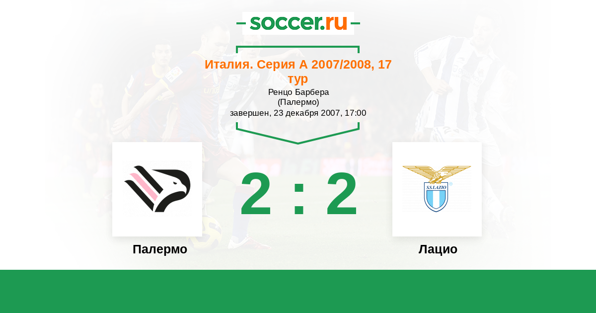 Италия. Серия А 04.05.2008 Лацио Логотип футбольный клуб Лацио (Рим) 1:2 Логотип футбольный клуб Палермо Палермо