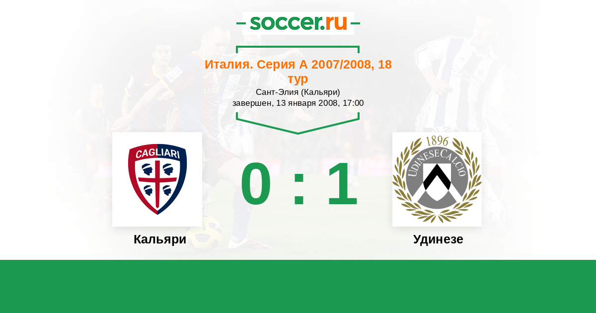 Италия. Серия А 18.01.2009 Кальяри Логотип футбольный клуб Кальяри 2:0 Логотип футбольный клуб Удинезе Удинезе
