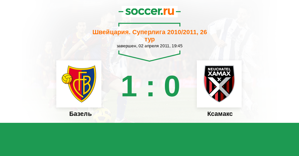Швейцария. Суперлига 20.04.2011 Ксамакс Логотип футбольный клуб Ксамакс (Невшатель) 2:2 Логотип футбольный клуб Базель Базель