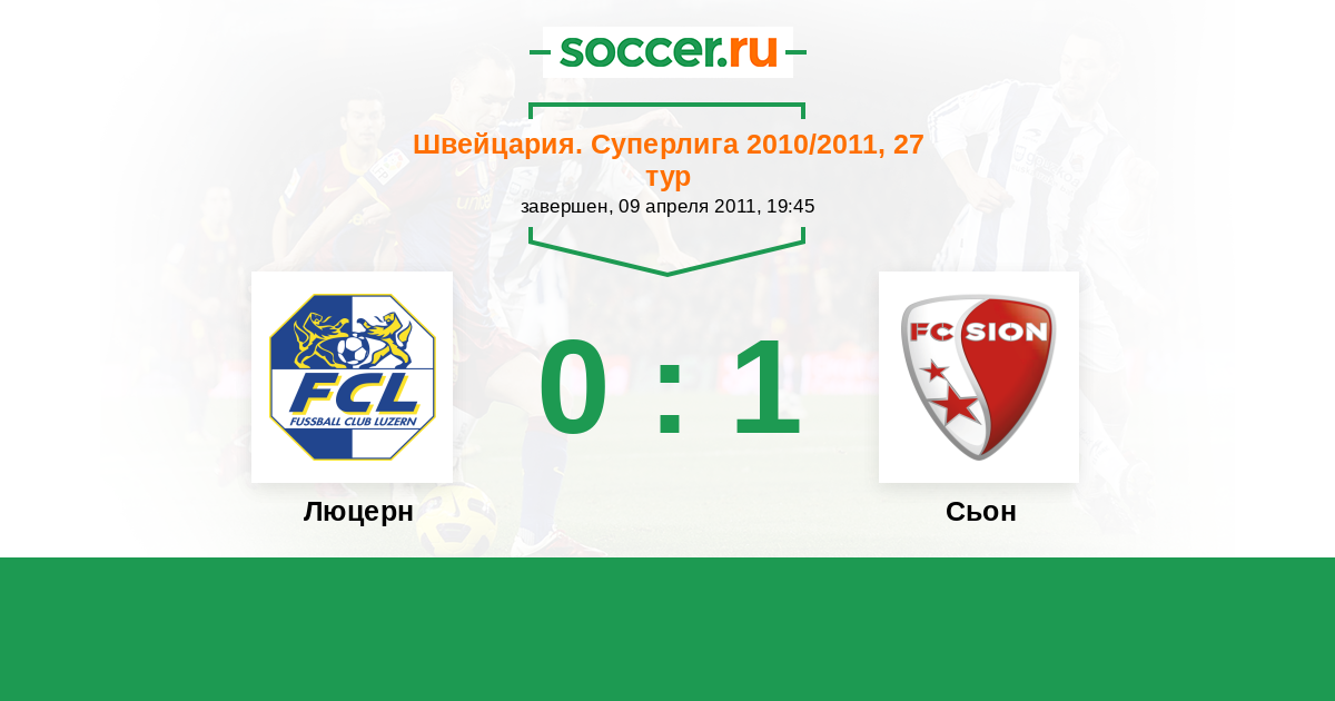 Швейцария. Суперлига 14.04.2010 Люцерн Логотип футбольный клуб Люцерн 1:1 Логотип футбольный клуб Сьон Сьон