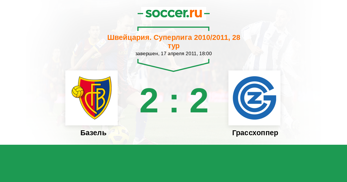 Швейцария. Суперлига 20.03.2011 Грассхоппер Логотип футбольный клуб Грассхоппер (Цюрих) 1:2 Логотип футбольный клуб Базель Базель