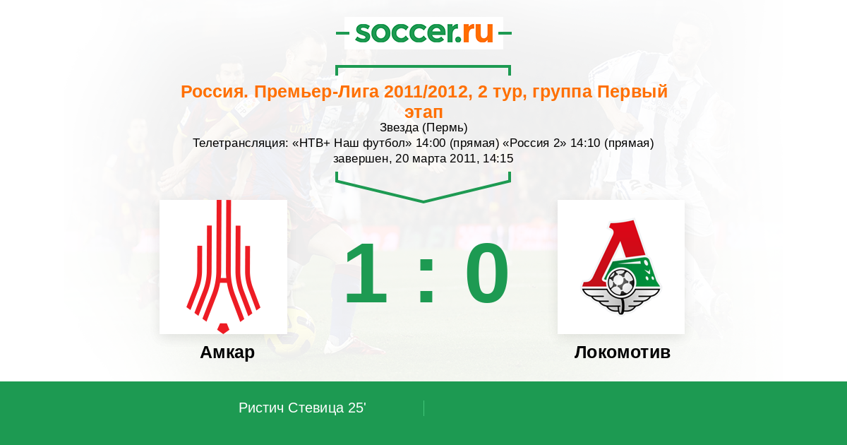 Протокол матча Амкар против Локомотив