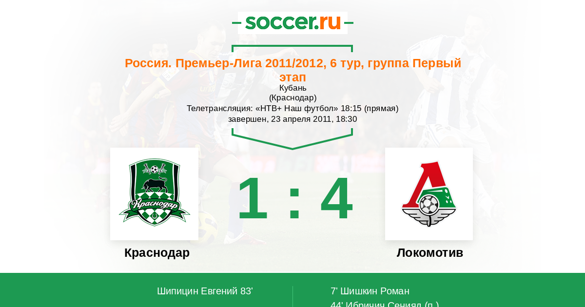 Протокол матча Краснодар против Локомотив