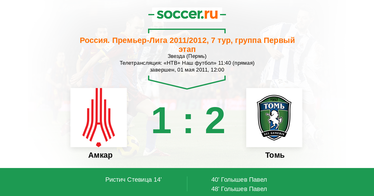 Протокол матча Амкар против Томь