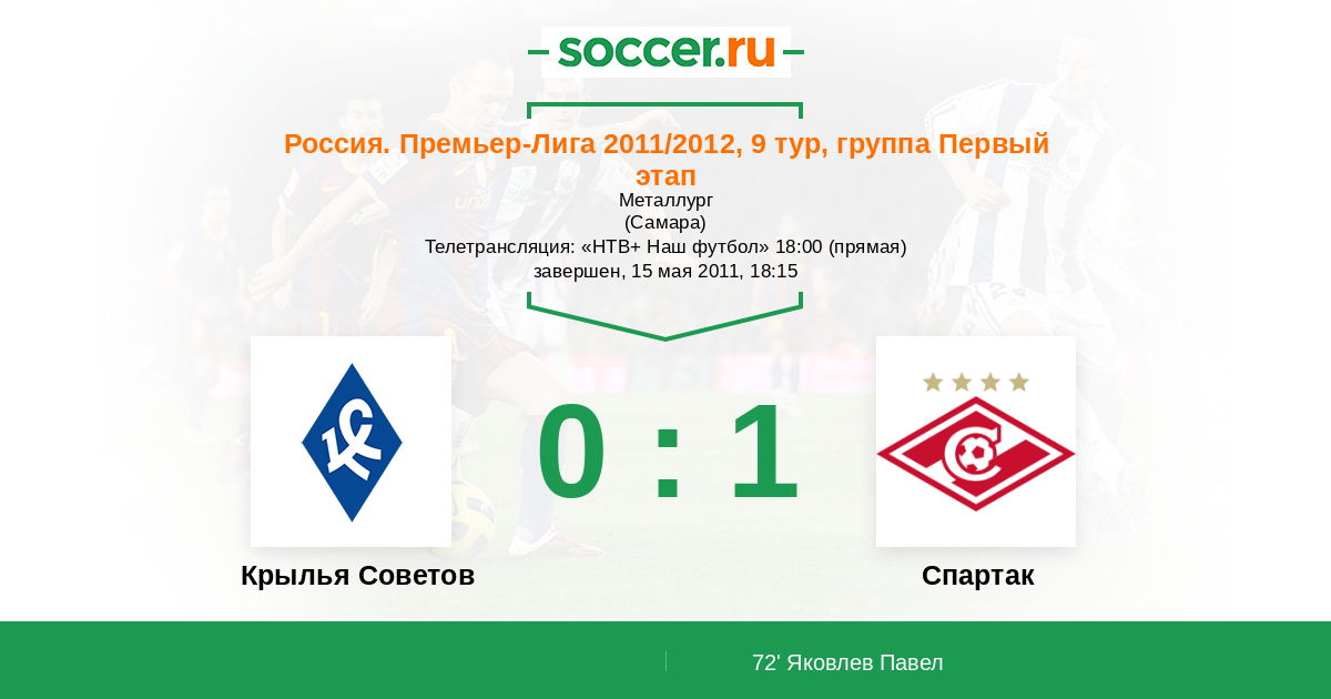 Протокол матча Крылья Советов против Спартак