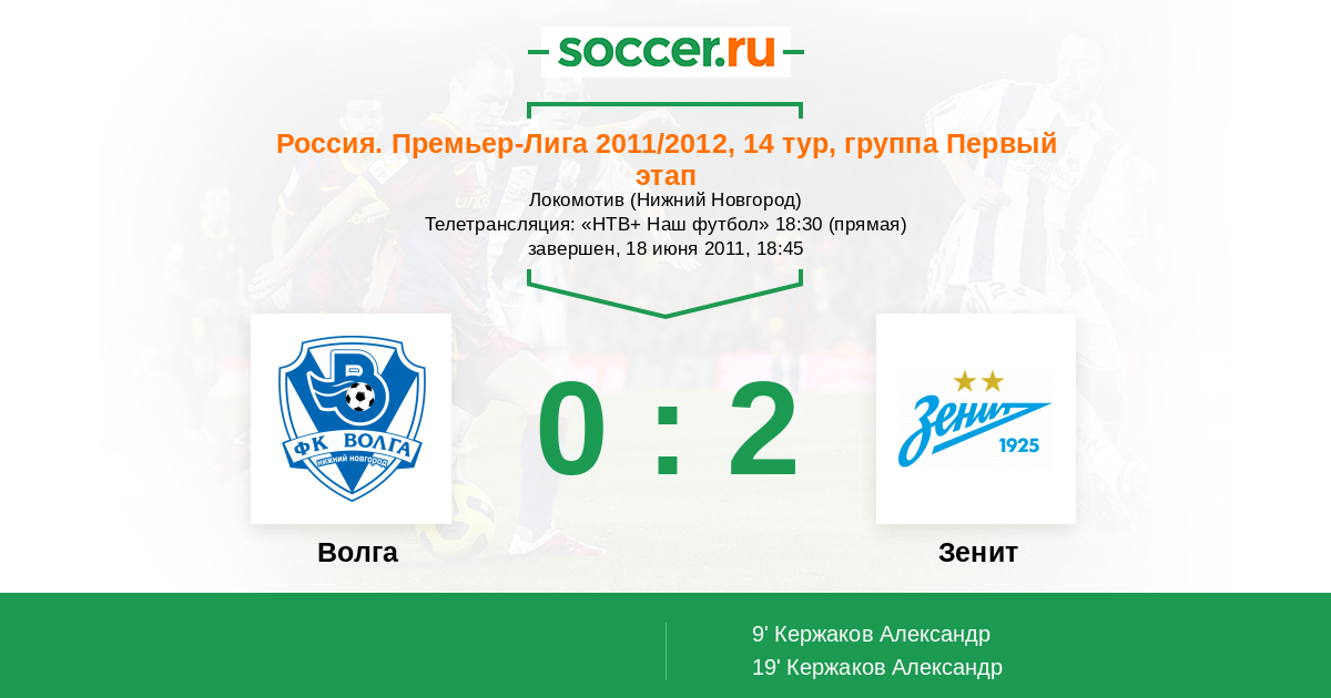 Протокол матча Волга против Зенит