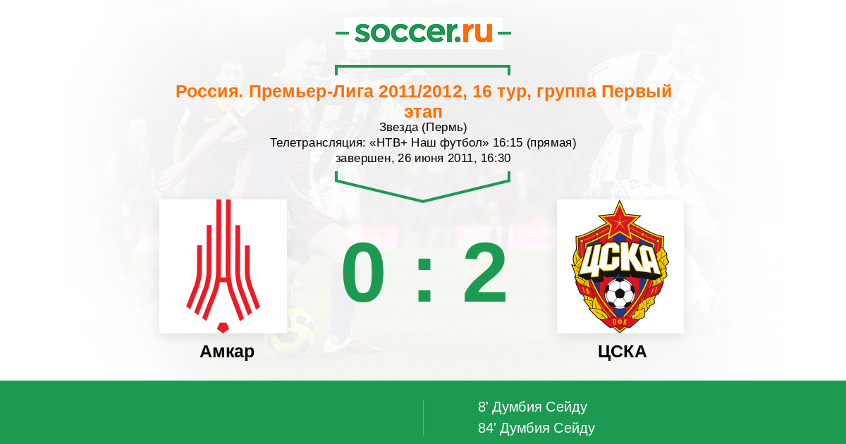 Протокол матча Амкар против ЦСКА