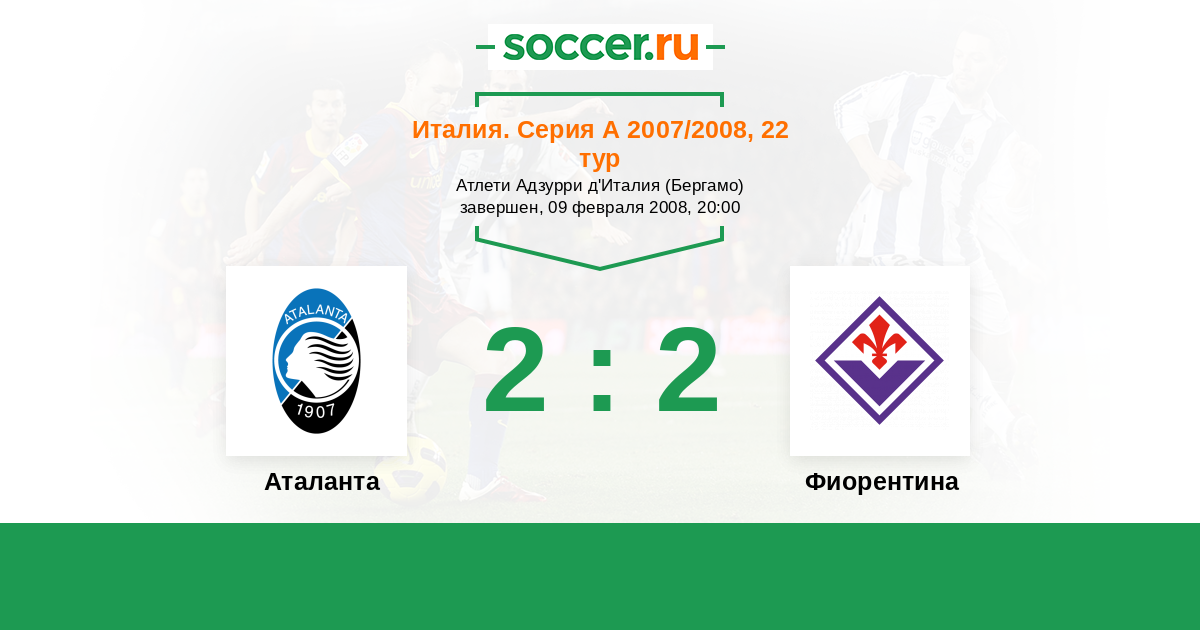 Италия. Серия А 01.04.2007 Аталанта Логотип футбольный клуб Аталанта (Бергамо) 2:2 Логотип футбольный клуб Фиорентина (Флоренция) Фиорентина
