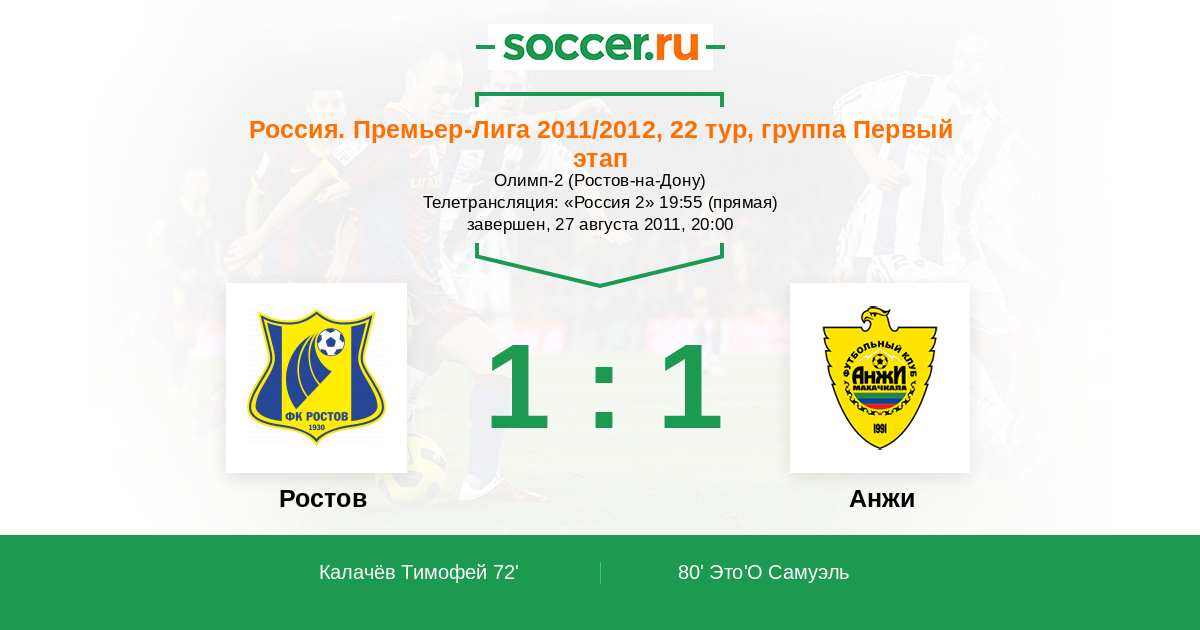 Протокол матча Ростов против Анжи