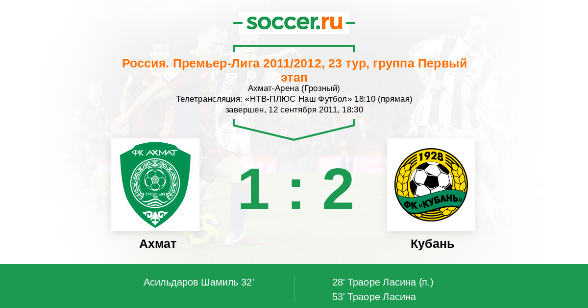 Протокол матча Терек против Кубань