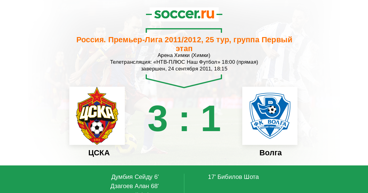 Протокол матча ЦСКА против Волга