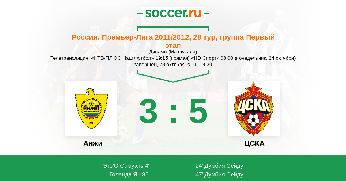 Протокол матча Анжи против ЦСКА