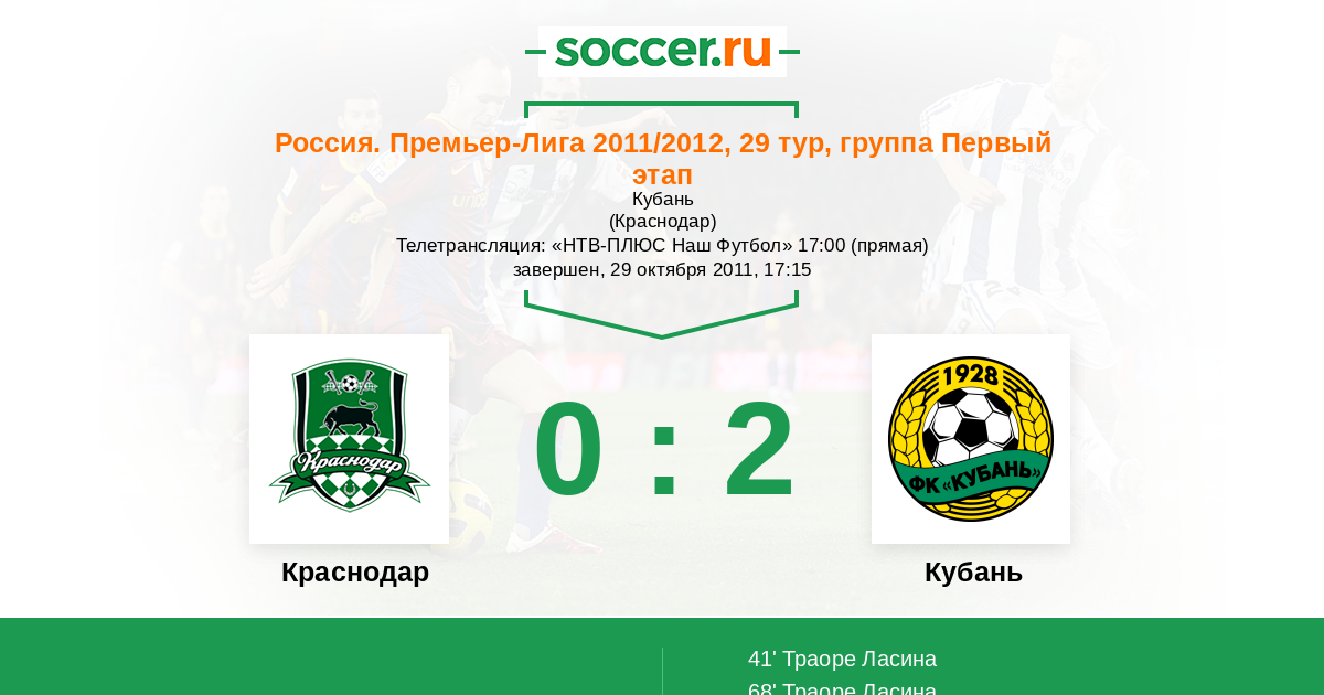 Протокол матча Краснодар против Кубань