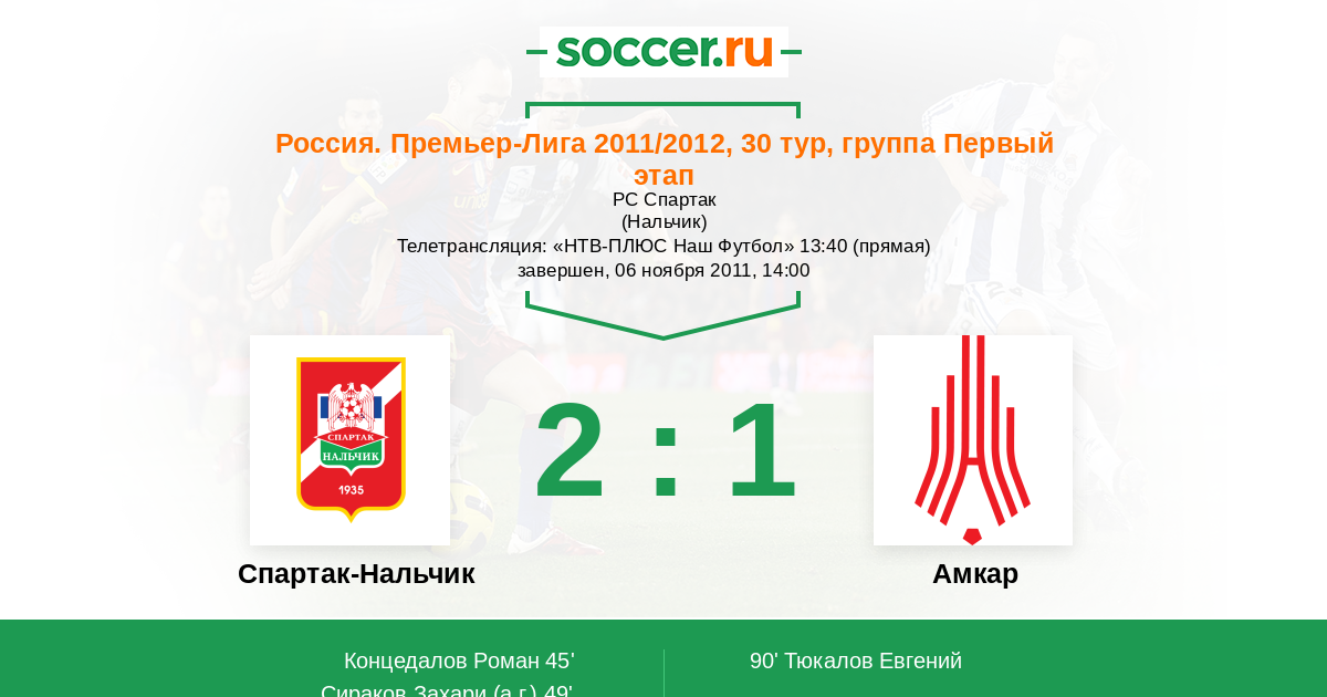 Протокол матча Спартак-Нальчик против Амкар
