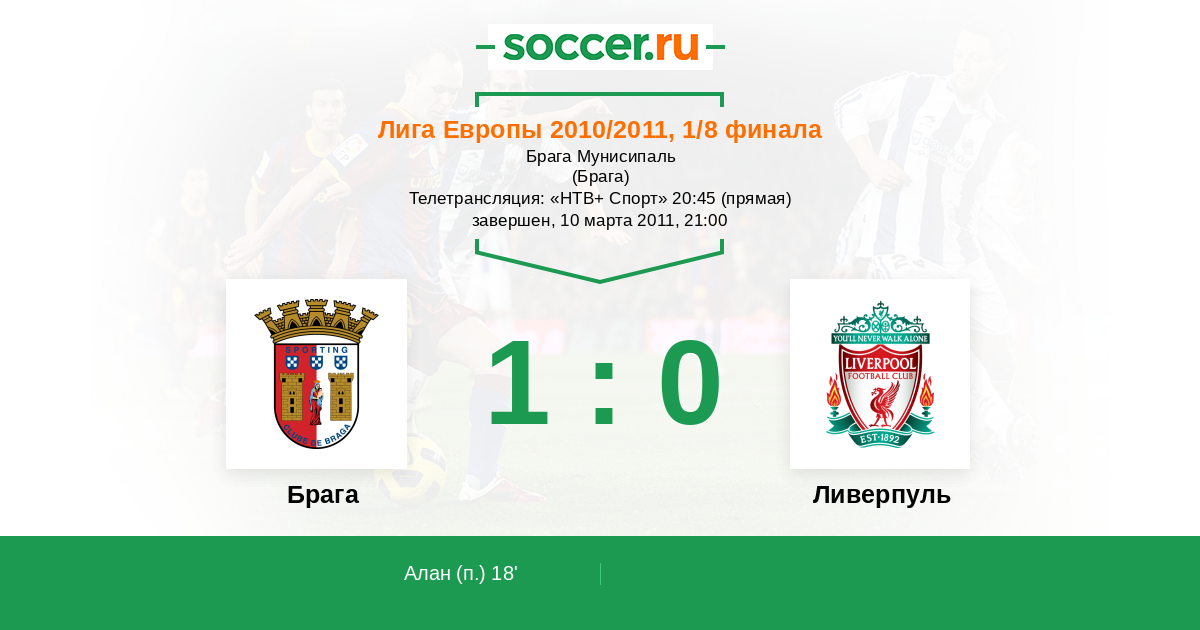 Протокол матча Брага против Ливерпуль