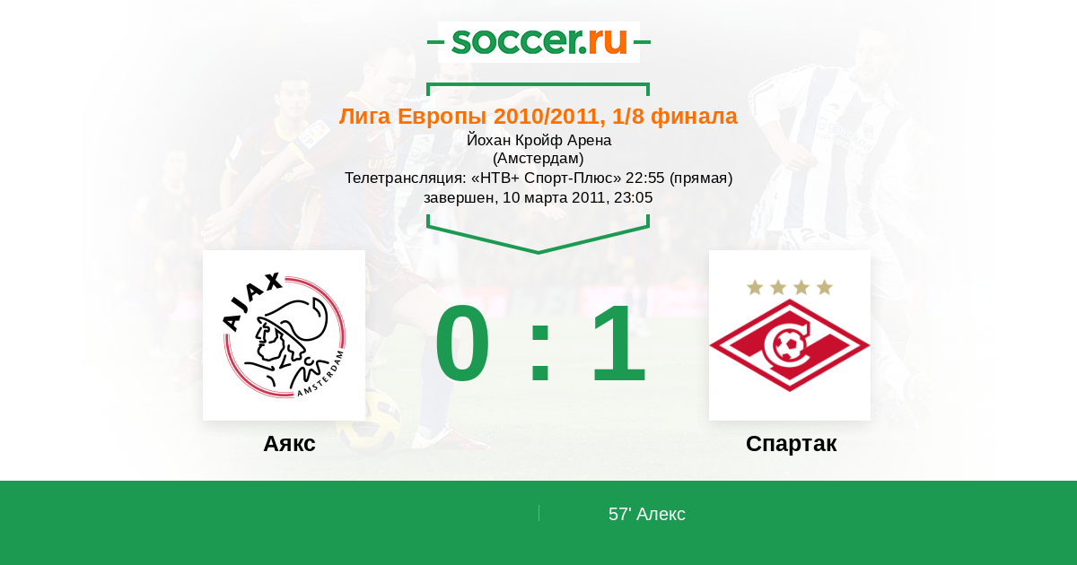 Протокол матча Аякс против Спартак