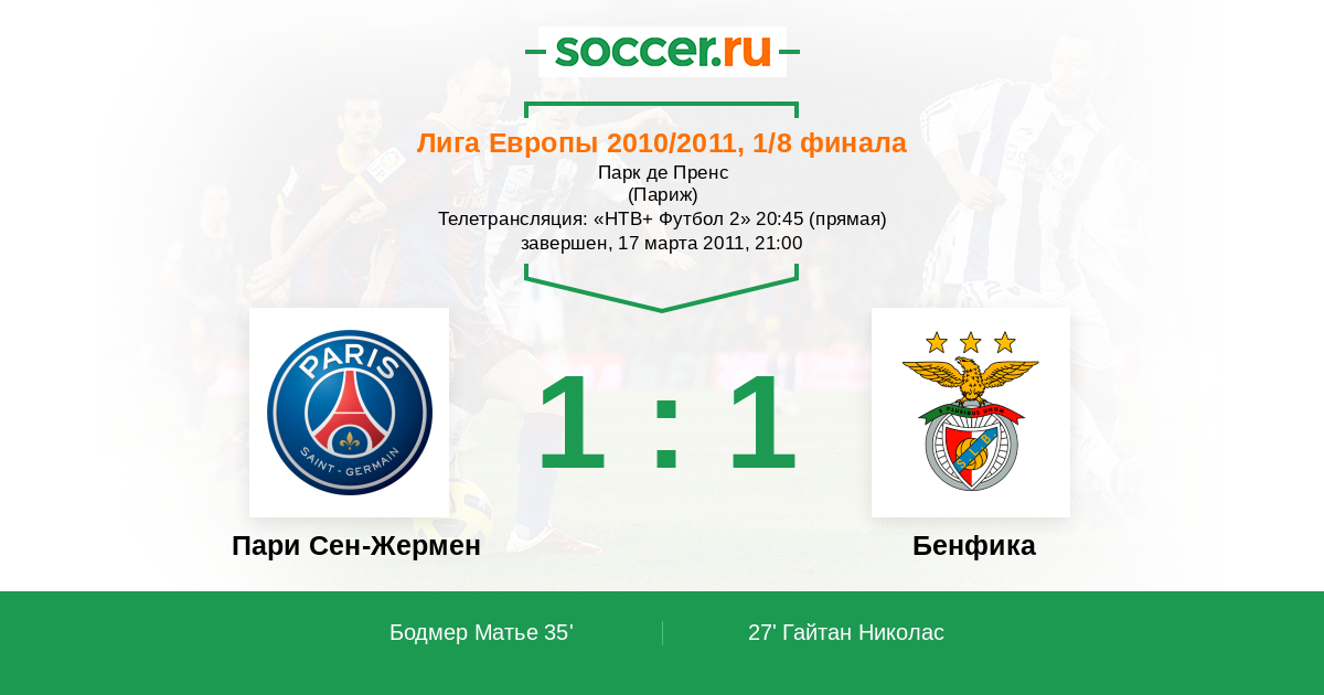 Протокол матча Пари Сен-Жермен против Бенфика