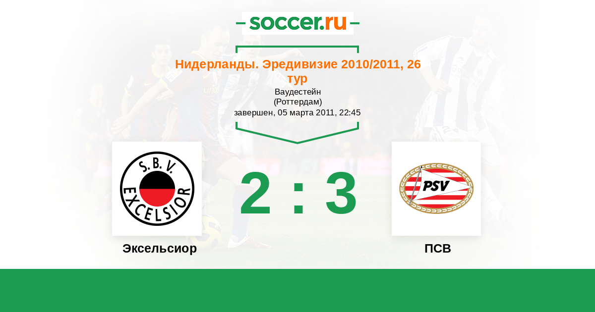 Нидерланды. Эредивизи 13.11.2010 ПСВ Логотип футбольный клуб ПСВ (Эйндховен) 4:2 Логотип футбольный клуб Эксельсиор (Роттердам) Эксельсиор